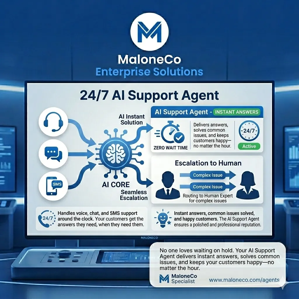 Who loves waiting on hold? No one. Your AI Support Agent delivers instant answers, solves common issues, and keeps your customers happy—no matter the hour.