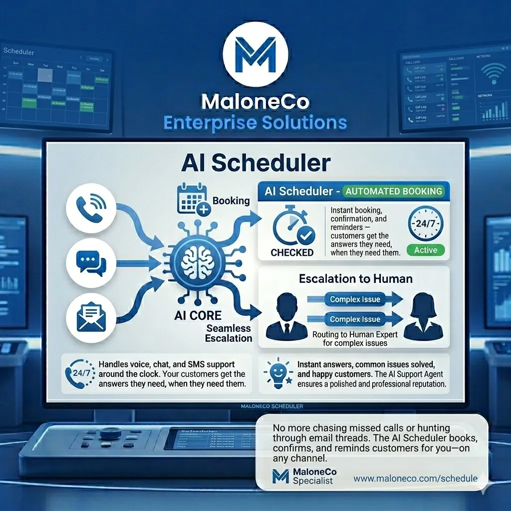 No more chasing missed calls or hunting through email threads. The AI Scheduler books, confirms, and reminds customers for you—on any channel.